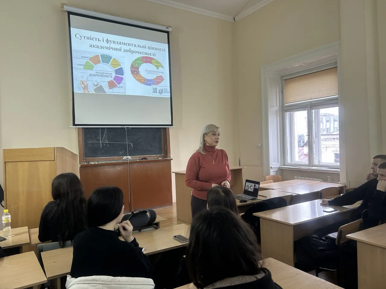🎓 1 грудня 2025 року для здобувачів першого (бакалаврського) рівня вищої освіти, які навчаються за освітньо-професійними програмами «Підприємництво та управління бізнесом» та «Управління персоналом» спеціальності D3 «Менеджмент» (галузь знань 07 «Бізнес, адміністрування та право») відбулася важлива лекція на тему «Сутність і фундаментальні цінності академічної доброчесності».