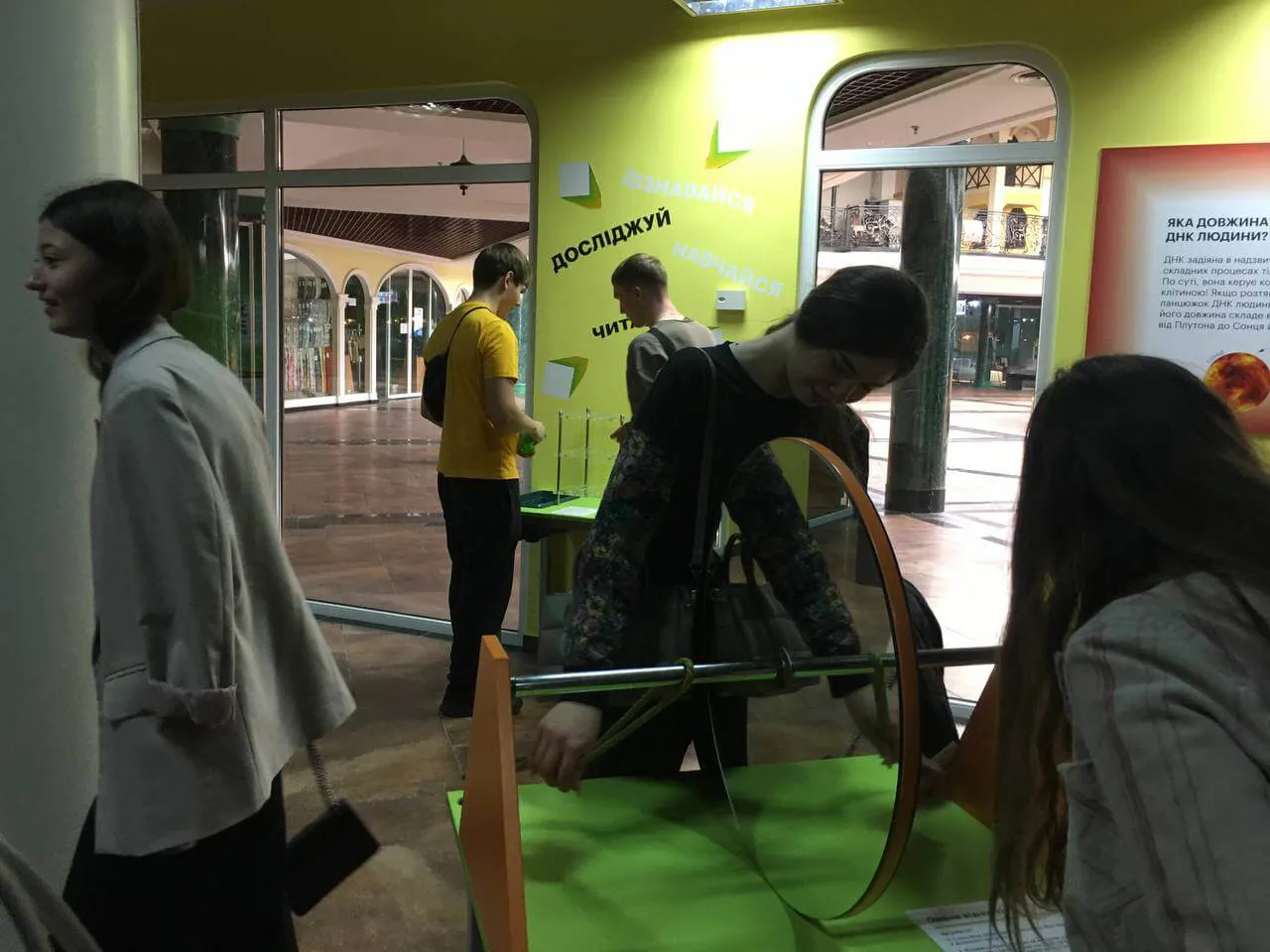 В інтерактивному просторі першокурсники досліджувати наукові явища, пізнавали як працює наука через взаємодію з усіма експонатами. У Музеї студенти-першокурсники в експозиційній зоні «людської головоломки» мали можливість зрозуміти: