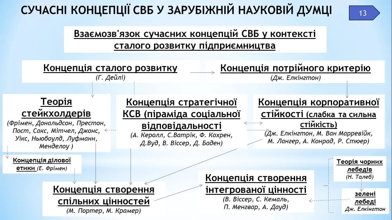 Доповідь була присвячена аналізу сучасних концепцій розвитку соціальної відповідальності, які орієнтують підприємництво на сталий розвиток. Соціальна відповідальність – це той феномен, який сформувався спочатку у практичній діяльності, а потім вже був оформлений в наукові теорії, які пояснювали його природу. У представленій доповіді, розглянуто базові та сучасні наукові роботи Е. Фрімена, А. Керола, Дж. Елкінгтона, М. Портера, М. Крамера, В. Візера, Ч. Кимала, П. Менгвара, А. Дауда, Н. Талеба та інших, чиє бачення соціальної відповідальності та сталого розвитку дозволило визначити підходи до трансформації сучасного цих понять в умовах глобальних перетворень.