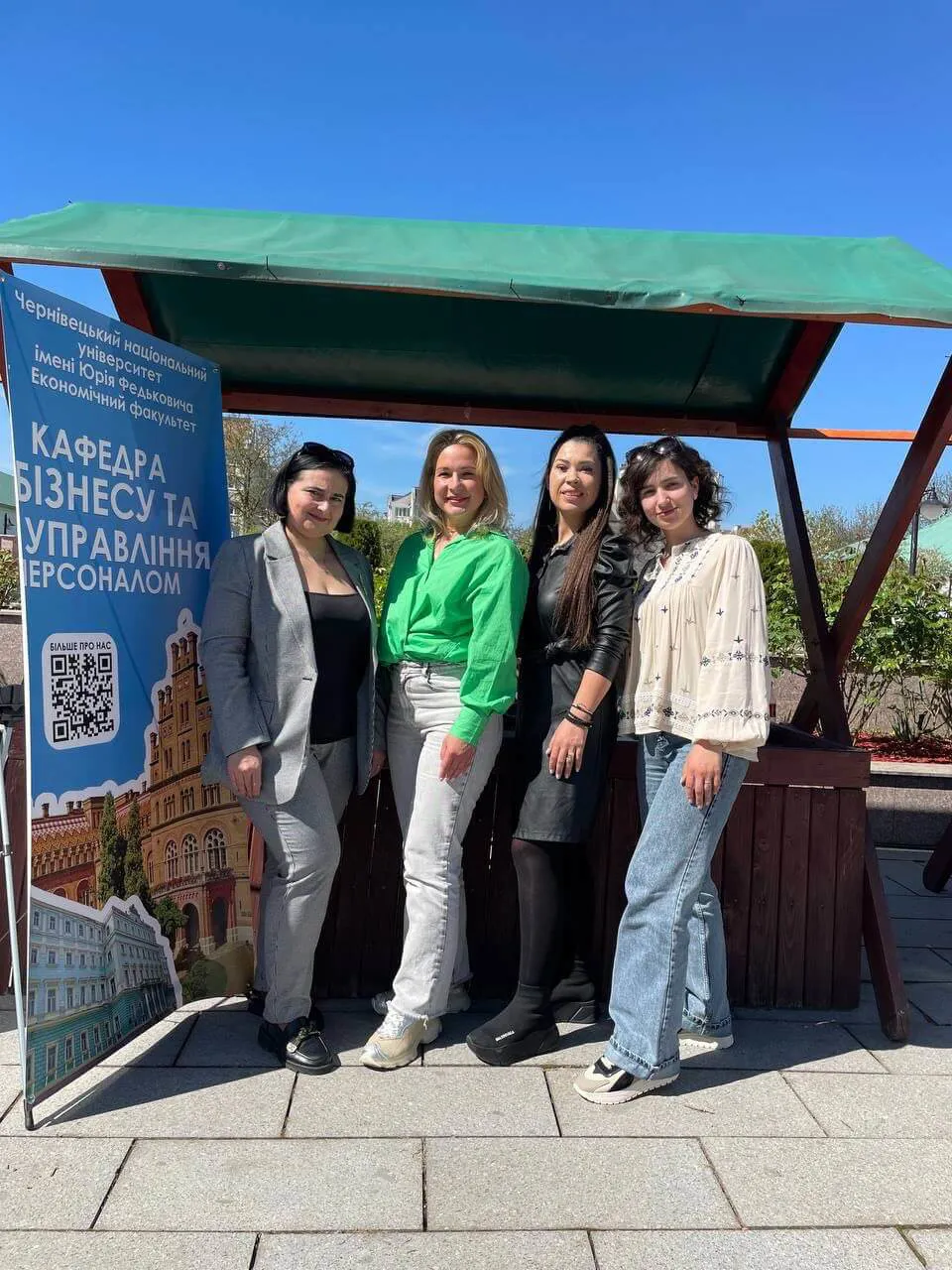 10-11 квітня 2024 р. у рамках співпраці з румунською організацією «РOV 21» представники кафедри доцентки: Любов Водянка, Зоряна Кобеля, Наталія Філіпчук та студентка Марія Георгіу взяли участь у щорічному заході-презентації освітніх програм закладів вищої освіти «Târgul de viitor marca POV21», м. Бістріца (Румунія). У заході взяли участь представники 25 провідних ЗВО з різних регіонів Румунії, Республіки Молдова та України, 10 міжнародних компаній та 2000 абітурієнтів.