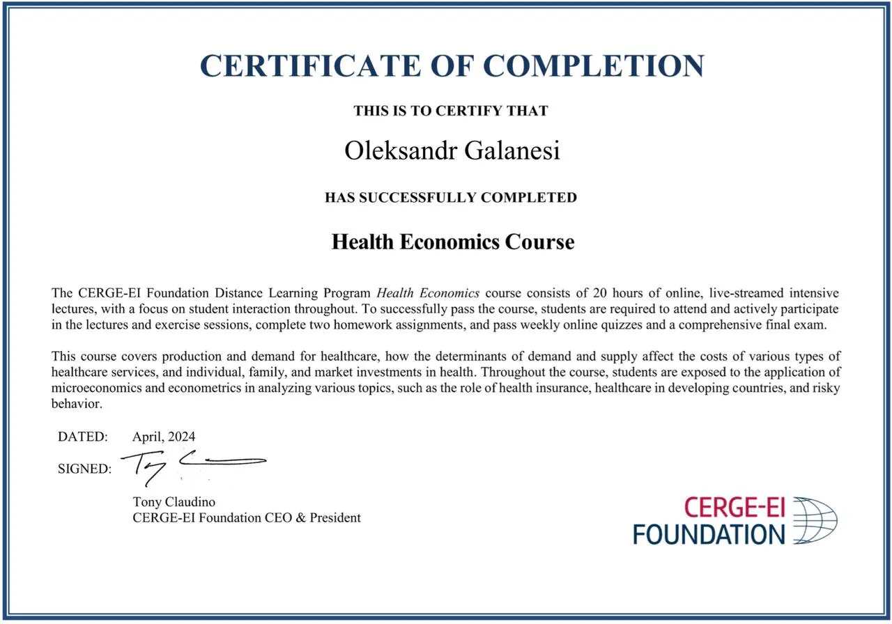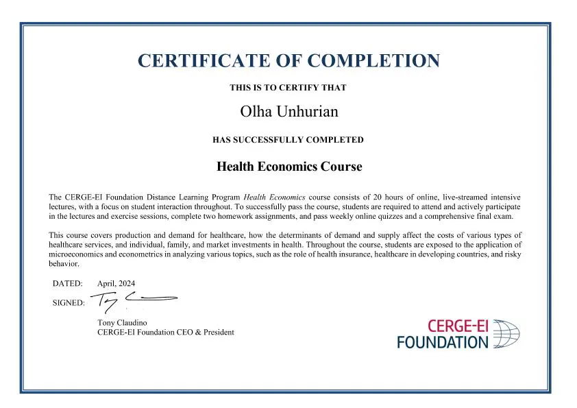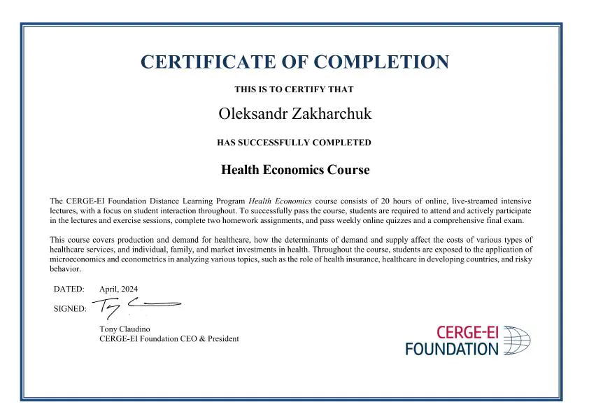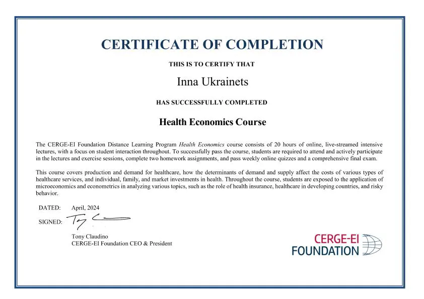 В рамках співпраці економічного факультету з CERGE-EI Foundation студенти різних курсів отримали можливість опанувати дисципліну «Health Economics».